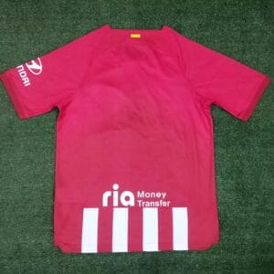 - Stemma del Club: Sul petto è presente lo stemma ufficiale dell’Atlético Madrid, cucito con cura, a testimonianza dell’autenticità del prodotto.