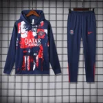 • Logo PSG e Jordan: I distintivi del PSG e Jordan su giacca e pantaloni, per un look autentico e sportivo.